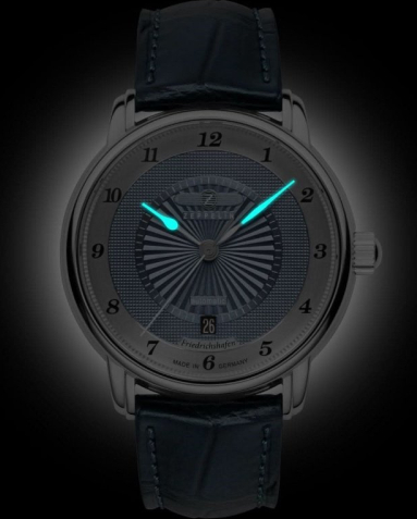 Ciferblatas Papuoštas ornamentais, Tamsoje švytinčios valandų padalos, Rodyklinis