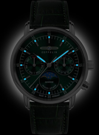 Ciferblatas Metalinės valandų padalos, Mėnulio fazės indikatorius, Rodyklinis, Tamsoje švytinčios valandų padalos, Tamsoje švytinčios rodyklės