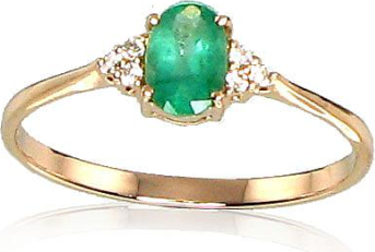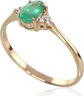 Zelta gredzens #1100091(Au-R+PRh-W)_DI+EM, Sarkanais Zelts 585°, rodijs (pārklājums), Briljanti (0,039Ct), Smaragds (0,4Ct), Izmērs: 17, 1.04 gr.