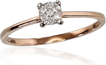 Zelta gredzens #1100288(Au-R+PRh-W)_DI, Sarkanais Zelts 585°, rodijs (pārklājums), Briljanti (0,075Ct), Izmērs: 16, 1.29 gr.