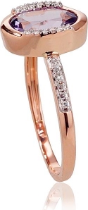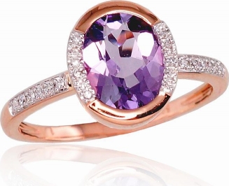 Zelta gredzens #1100523(Au-R+PRh-W)_DI+AM, Sarkanais Zelts 585°, rodijs (pārklājums) , Briljanti (0,076Ct), Ametists (1,419Ct), Izmērs: 18.5, 2.72 gr.