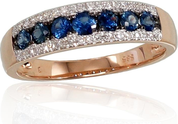 Zelta gredzens #1100664(Au-R+PRh-W+PRh-Bk)_DI+SA, Sarkanais Zelts 585°, rodijs (pārklājums), Briljanti (0,094Ct), Safīrs (0,55Ct), Izmērs: 18.5, 2.1 gr.