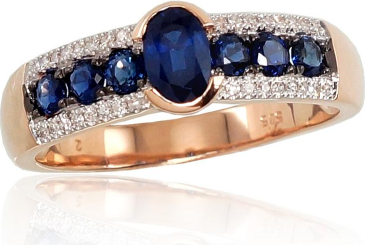 Zelta gredzens #1100665(Au-R+PRh-W+PRh-Bk)_DI+SA, Sarkanais Zelts 585°, rodijs (pārklājums), Briljanti (0,083Ct), Safīrs (0,968Ct), Izmērs: 18, 2.97 gr.