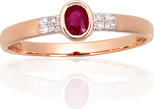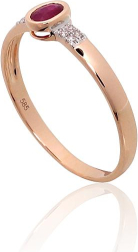 Zelta gredzens #1101144(Au-R+PRh-W)_DI+RB, Sarkanais Zelts 585°, rodijs (pārklājums), Briljanti (0,024Ct), Rubīns (0,268Ct), Izmērs: 16, 1.18 gr.