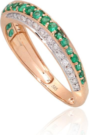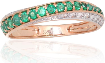 Zelta gredzens #1101171(Au-R+PRh-W)_DI+EM, Sarkanais Zelts 585°, rodijs (pārklājums), Briljanti (0,218Ct), Smaragds (0,403Ct), Izmērs: 18, 1.77 gr.
