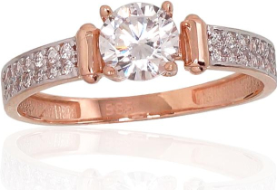 Zelta gredzens #1100888(Au-R+PRh-W)_CZ, Sarkanais Zelts 585°, rodijs (pārklājums), Cirkoni, Izmērs: 21, 2.37 gr.