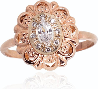 Zelta gredzens #1100898(Au-R+Au-W)_CZ, Sarkanais/Baltais Zelts 585°, Cirkoni, Izmērs: 20.5, 1.57 gr.