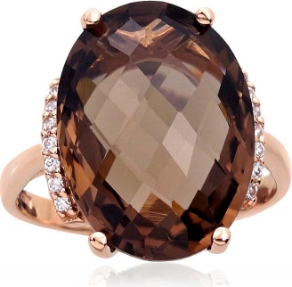 Zelta gredzens #1100965(Au-R)_CZ+KZSM, Sarkanais Zelts 585°, Cirkoni , Dūmu kvarcs , Izmērs: 18, 5.42 gr.