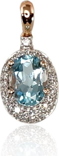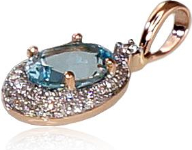 Zelta kulons #1300264(Au-R+PRh-W)_DI+TZLB, Sarkanais Zelts 585°, rodijs (pārklājums), Briljanti (0,09Ct), Debess zils topāzs, 0.87 gr.