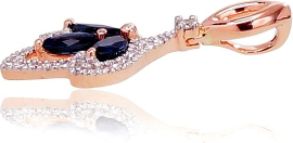 Zelta kulons #1300414(Au-R+PRh-W)_DI+SA, Sarkanais Zelts 585°, rodijs (pārklājums), Briljanti (0,056Ct), Safīrs (0,28Ct), 0.83 gr.