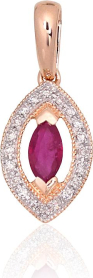 Zelta kulons #1301074(Au-R+PRh-W)_DI+RB, Sarkanais Zelts 585°, rodijs (pārklājums), Briljanti (0,044Ct), Rubīns (0,211Ct), 0.73 gr.
