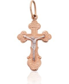 Zelta kulons-krustiņš #1300505(AU-R+PRH-W), Sarkanais zelts	585°, rodijs (pārklājums) , 1.62 gr. Krustiņi un ikonas (pareizticīgu)