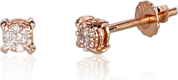 Zelta auskari-puseti ar skrūvēm #1200510(Au-R)_DI, Sarkanais Zelts 585°, Briljanti (0,097Ct), 0.86 gr.