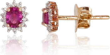 Zelta auskari-puseti #1200249(Au-R+PRh-W)_DI+RB, Sarkanais Zelts 585°, rodijs (pārklājums), Briljanti (0,074Ct), Rubīns (0,492Ct), 1.32 gr.