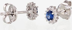 Zelta auskari-puseti #1200249(Au-W)_DI+SA, Baltais Zelts 585°, Briljanti (0,078Ct), Safīrs (0,428Ct), 1.42 gr.