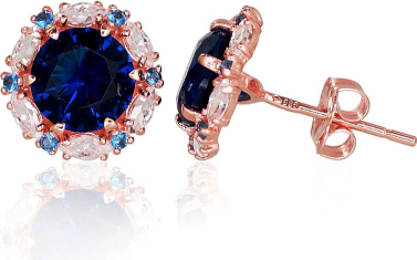Zelta auskari-puseti #1200602(Au-R)_CZ+CZ-B, Sarkanais Zelts 585°, Cirkoni, 1.16 gr.