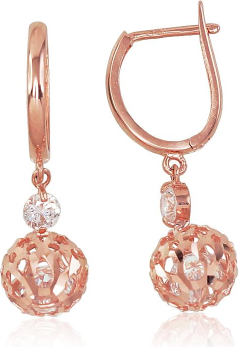 Zelta auskari ar 'angļu' slēdzēju #1200044(Au-R)_CZ, Sarkanais Zelts 585°, Cirkoni, 2.15 gr.