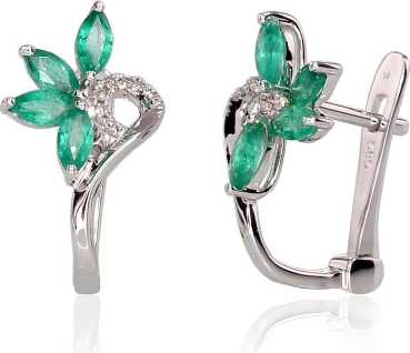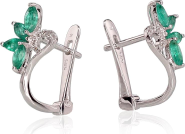 Zelta auskari ar 'angļu' slēdzēju #1200717(Au-W)_DI+EM, Baltais Zelts 585°, Briljanti (0,03Ct), Smaragds (0,572Ct), 1.97 gr.
