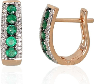 Zelta auskari ar 'angļu' slēdzēju #1200970(Au-R+PRh-W+PRh-Bk)_DI+EM, Sarkanais Zelts 585°, rodijs (pārklājums), Briljanti (0,13Ct), Smaragds (0,482Ct), 2.28 gr.