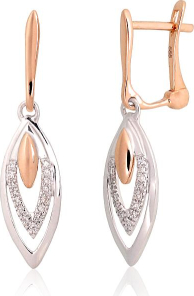 Zelta auskari ar 'angļu' slēdzēju #1201551(Au-R+Au-W)_DI, Sarkanais/Baltais Zelts 585°, Briljanti (0,069Ct), 1.94 gr.