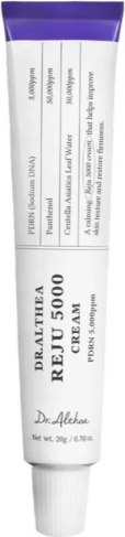 Sejas krēma sastāvs Dr. Althea PDRN Reju 5000 Cream 20 ml ir intensīvi atjaunojošs sejas krēms, kas paredzēts ādas barjeras stiprināšanai, mitrināšanai un reģenerācijas veicināšanai. Tā formula satur PDRN (Sodium DNA 5000 ppm), kas palīdz veicināt ādas atjaunošanās procesus, uzlabot elastību un izlīdzināt ādas tekstūru, kā arī EGF (sh-Oligopeptide-1), kas palīdz stimulēt šūnu atjaunošanos un uzlabot ādas tvirtumu. Sastāvā ir arī hialuronskābes komplekss (vairākas formas), kas palīdz intensīvi mitrināt ādu dažādos slāņos, kā arī pantenols un centella asiatica, kas palīdz nomierināt kairinājumu un samazināt apsārtumu. Papildus ir antioksidanti un lipīdu atbalstošas sastāvdaļas, kas palīdz stiprināt ādas aizsargbarjeru un uzlabot komfortu.