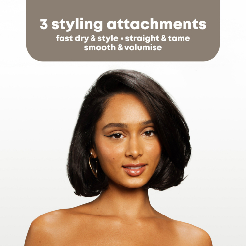 Hidrojonu matu tehnoloģija, lai uzlabotu matu mitrināšanu un palīdzētu novērst lūšanu Digitāls viedais bezsuku motors darbojas ar ātrumu līdz 110 000 apgr./min, lai nodrošinātu ātrāku žāvēšanu un saudzīgāku ieveidošanu Trīs maināmi veidošanas uzgaļi: koncentratora uzgalis, taisnošanas un fiksēšanas suka, izliekta ovāla saru suka 4 karstuma, 3 ātruma iestatījumi, kas piemēroti visiem matu tipiem Katrs REVAMP matu kopšanas klāsta produkts ir bagātināts ar Progloss™ Super Smooth eļļām, kas bagātinātas ar keratīna, argāna un kokosriekstu eļļām, lai nodrošinātu maksimālu gludumu, uzlabotu spīdumu un rezultātus bez spurošanās Komplektā iekļauta skaistumkopšanas līdzekļu uzglabāšanas soma Kompakts un īpaši viegls (330 g) Viegli tīrāms, noņemams aizmugurējais filtrs 3 m salona grozāmais vads