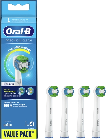 PRODUKTA APRAKSTS Uzlabojiet tīrīšanas efektivitāti Uzlabotajās Oral-B Precision Clean birstes galviņās ir jaunākie CleanMaximiser sari, kas maina krāsu, kad birstes galviņas ir jānomaina, saglabājot tās svaigas un efektīvas optimālai tīrīšanai. CleanMaximiser saru tehnoloģija Zobārsti iesaka mainīt zobu birstes galviņu ik pēc trim mēnešiem. Uzlabotajām Oral-B 3D White maiņas birstes galviņām ir zaļi CleanMaximiser sariņi, kas kļūst dzelteni, lai atgādinātu, ka ir laiks nomainīt birstes uzgali efektīvai tīrīšanai. Oral-B birstes galva efektīvai tīrīšanai Oral-B unikālā apaļā birstes galviņa aptin katru zobu, nodrošinot izcilu tīrīšanu un smaganu veselību Efektīva tīrīšana Unikālie sariņi noņem aplikumu, lai katru zobu notīrītu rūpīgāk nekā parastā manuālā zobu birste. Izstrādāts kopā ar zobārstiem, garantēta savietojamība Katra detaļa līdz pat sariem ir izstrādāta kopā ar zobārstiem izcilai tīrīšanai. Oral-B birstes uzgaļi ir garantēti, lai tie atbilstu visam Oral-B elektrisko zobu suku klāstam (izņemot Pulsonic un iO) Zīmolu iesaka zobārsti visā pasaulē Zobārsti uzticas Oral-B. Oral-B ir zobārstu ieteiktais zobu birstes zīmols Nr. 1 visā pasaulē. |
