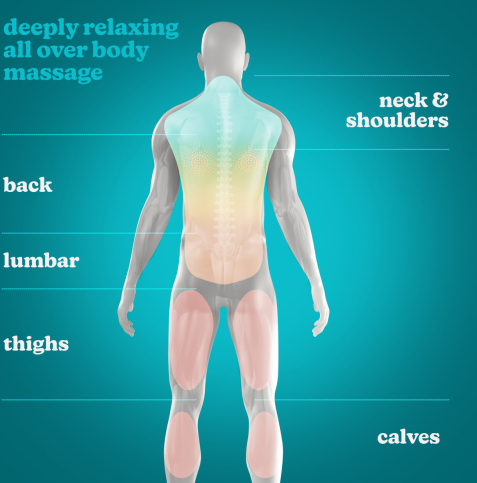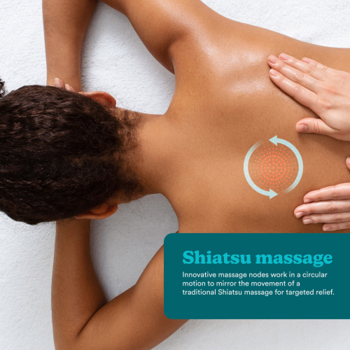 | 4 masāžas mezgli Rotācija pulksteņrādītāja virzienā un pretēji pulksteņrādītāja virzienam Nomierinoša siltuma iespēja Ergonomisks, konturēts dizains daudzfunkcionālai lietošanai Ērti lietojama skārienvadības etiķete 1 stunda darbības laiks no vienas uzlādes |