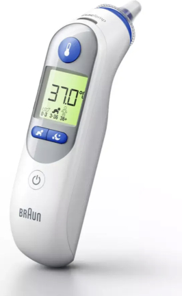 Mērīšanas metode: infrasarkanā temperatūras mērīšana ausī Termometra novietojums: auss (pie bungplēves zonas) Mērīšanas režīmi: ķermeņa temperatūra Mērvienība: grādi pēc Celsija (°C) Displejs: digitāls LCD ar apgaismojumu Vadība: pogu vadība Piemērots lietotājiem: jaundzimušajiem, bērniem un pieaugušajiem Dizains: rokas ierīce, ergonomiska forma Komplektācija: 1 termometrs Pielietojums: ātrai un precīzai ķermeņa temperatūras noteikšanai mājas apstākļos