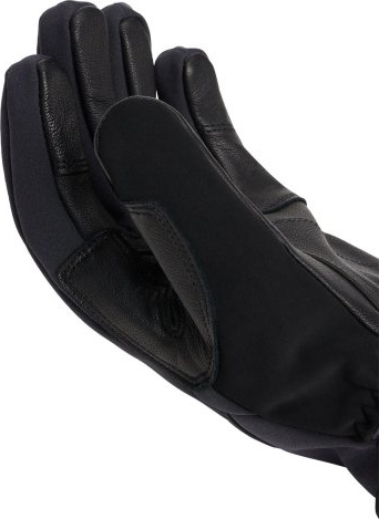 Plaukstas daļa un īkšķis pastiprināti ar izturīgu un mīkstu dabīgo ādu, uz īkšķa flīss mitruma notraukšanai, iekšpusē patīkami silts oderējums.