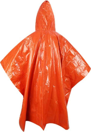 Viegls pončo ārkārtas gadījumiem Ļoti vieglais pončo ir ūdensnecaurlaidīgs , vēja necaurlaidīgs un siltumizolējošs . Atstarojošajam iekšējam pārklājumam ir siltumizolācijas efekts. Izgatavots no alumīnija iztvaicētas PE folijas, pončo nodrošina siltumu ekstremālākajos apstākļos. Materiāls ir īpaši izturīgs pret plīsumiem un caurduršanu tā biezuma dēļ, tāpēc var izturēt ekstremālos apstākļus. Ar 132 cm garumu, stāvot nosedz vismaz ceļus un tādējādi nodrošina sausumu un siltumu. Pārvietojoties, materiāls ir ārkārtīgi kluss . Pončo ir pieejams divās dažādās versijās: Avārijas krāsa spilgti oranžā kā signālkrāsa ārkārtas situācijām un maskēšanās olīvzaļā krāsa pārgājieniem un pastaigām pa mežu. Komplektā uzglabāšanas maisiņš.