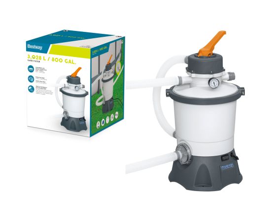 Sand pump 3028L / h Bestway 58515 One of the best devices to purify your pool water is a sand pump. It is distinguished from an ordinary filter by the fact that sand is used for its operation, thanks to which it becomes more ecological. Regular pool filters should be replaced every 2 weeks, while quartz sand retains its properties up to a year. The pump has a 280W motor, thanks to which it can achieve a capacity of 8327 liters per hour. The pump also has 6 different operating modes such as rinsing, washing, filtration, recirculation, draining and shutting down the device. The pump is also equipped with a chemical dispenser, which maintains the right amount of chlorine and ensures proper cleanliness of the water in your pool. Technical data: - capacity 8327 L / h - 220-240 V power supply - hose diameter 32 mm - the required contribution is sand 0.45-0.85 mm - 8.5 kg tank capacity - power 85W - use in swimming pools: From a capacity of 1000 l to 54500 Main features: - manometer for reading - 6 position valve - control valve - tablet dispenser - pre-filter that easily separates leaves etc. - anti-corrosion tank - all the necessary elements for the operation of the pump are included in the set Weight: 8kg |