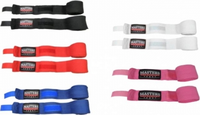 | Masters boksa pārsēju aptinumi - BB-3 13013-02 Elastīgie boksa pārsēji nostiprina rokas, novēršot traumas. Iespējas: Garums 300cm Platums 5cm speciāls pinums, lai pārsējs nesarullētu īkšķa cilpa Velcro aizdare komplektā ietilpst 2gab Materiāls: kokvilna ar poliestera piedevu |