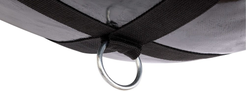 Pateicoties tam, treniņa laikā jums nebūs jāuztraucas par lidojošu maisu - to var piestiprināt pie gumijas lentas vai virves. Apakšējā stiprinājuma siksnas pilda vēl vienu svarīgu funkciju: tās vēl vairāk nostiprina somas dubultā dibena konstrukciju, padarot to vēl izturīgāku.