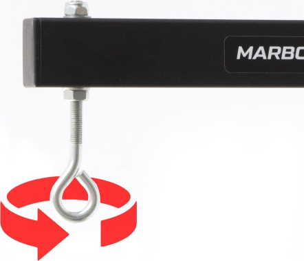 Mēs esam vienīgais uzņēmums tirgū, kas ir attaisnojis klientu vēlmes un radījis āķi, kuru pareizi noregulējot, boksa maiss griežas ap savu asi vai ne griežas! Šādos risinājumos drošība ir prioritāte, tāpēc āķis ir aprīkots ar īpašu fiksācijas uzgriezni, kas neļauj tam pilnībā atskrūvēties. Stiprinājums nodrošina 100 cm garumu, tāpēc boksa maiss būs drošā attālumā no sienas, nodrošinot ērtu un drošu treniņu.