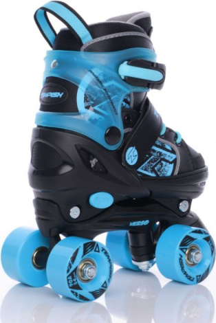 TECHNICAL SPECIFICATIONS Intended use Fitness, dancing, indoor and outdoor recreational riding Skids: 3 types of interchangeable skids: roller skates, ice skates, roller skates Wheel size: Depending on the size of the skates: (26-29) 60mm, (30-33) and (34-37) 70mm, Roller skates: 54x32mm Wheel hardness: 82A / 90A Bearings: 608, ABEC 7 Tying system: Laces Type | Shoe shell: High-impact PE, 3-piece, adjustable, lightweight, semi-soft Liner (inner sock) Reinforced NYLON / NYLEX, anatomical, reinforced with PVC parts, anatomical lining Brake: Included Upper fastening: Buckle Closure: 45 degrees Velcro Axles - Weight limit of 60 kg | ||||||||||||||||||||||