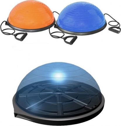| Komplektā: piepūšamā puslode un cietās plastmasas 58 cm diametra platforma ar pretestības gumijām 2 punktos, stiprinājuma kronšteini (komplektā 2 fiksējoši gumijas elastīgie rokturi, sūknis). Treneris ir paredzēts, lai uzlabotu līdzsvaru un prioritāšu noteikšanu un stiprinātu muskuļus. Simulatoru var izmantot ar platformu uz grīdas vai otrādi. |