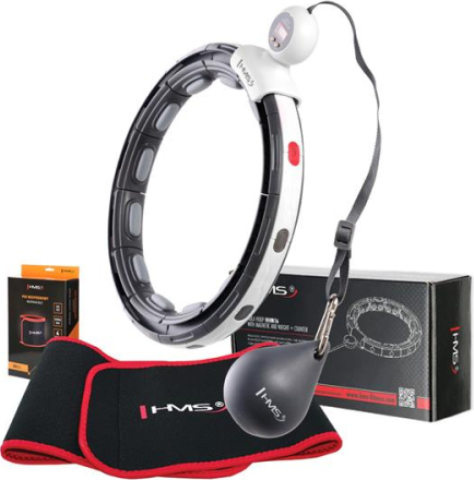Komplekts SET HULA HOOP MAGNETIC BLACK HHM15 WITH WEIGHT + COUNTER HMS + WAIST SUPPORT BR163 RED