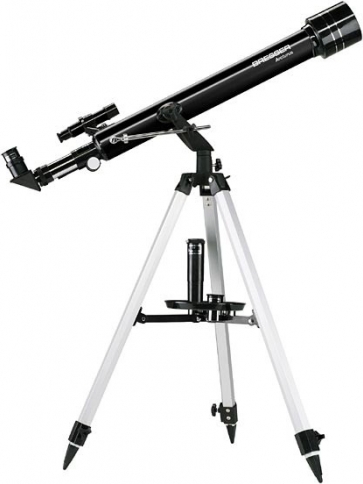 Atveriet kasti un esiet gatavs darbam: Bresser Arcturus 60/700 AZ lēcas teleskops parāda jums aizraujošo zvaigžņu kopu un planētu pasauli. Šajā komplektā ir viss, kas nepieciešams jūsu pirmajiem soļiem debesu novērošanā: astronomiskais objektīva teleskops ar 60 mm apertūru un 700 mm fokusa attālumu, azimutālais montējums, statīvs un daudz piederumu. Sistēma ir ļoti viegli lietojama, tāpēc tā ir ideāli piemērota, lai bērnus iepazīstinātu ar astronomiju kā hobiju. Un tā kā arī uz Zemes ir tik daudz skaistu lietu, ko atklāt, teleskops ir piemērots dabas un ainavu vērošanai. Īsta astroklasika – teleskops Ar šo klasisko lēcu teleskopu – tā saukto Fraunhofera ahromatisko refraktoru – pat iesācēji un bērni var viegli gūt jaunus ieskatus naksnīgajās debesīs. Pateicoties modernajai, precīzi pārklātajai optikai, iesācēju teleskops piedāvā labas attēlveidošanas īpašības. Ass attēls ar labu kontrastu – to nodrošina lielā fokusa attiecība aptuveni no 1 līdz 11,7 (F/11,7), kas izriet no 60 mm optikas diametra attiecības pret 700 mm fokusa attālumu. Lieliski piemērots mūsu Mēness, planētu, kā arī atklātu zvaigžņu kopu un lodveida kopu izpētei. Un kā ar palielinājumu? 60 mm optikas diametrs nodrošina izšķirtspēju, kas ļauj viegli palielināt līdz aptuveni 120x ar patiešām asiem attēliem. Tehniski ar šo iesācēju teleskopu ir iespējams vēl vairāk – līdz pat 175x ar iekļautajiem piederumiem. Tomēr, palielinoties palielinājumam, attēls var kļūt arvien neskaidrāks. Tas, cik liels palielinājums patiesībā ir iespējams, ir atkarīgs ne tikai no teleskopa, bet arī no gaisa turbulences atmosfērā (redzes apstākļi). Pamats iespaidu iegūšanai – montējums un statīvs Nakts novērojumiem piestipriniet teleskopu pie regulējama augstuma alumīnija statīva ar azimutālo montējumu. Pateicoties tā ārkārtīgi vienkāršajai darbībai, ar šo azimutālo montējumu varat izbaudīt astronomiskos novērojumus bez piepūles. Tāpat kā ar parastu foto statīvu, iesācēju teleskopu vienkārši pagriežat ar roku uz augšu un uz leju, pa kreisi un pa labi. Lai jūsu okulāri, kompass, zvaigžņu karte utt. vienmēr būtu sasniedzami, vienkārši novietojiet piederumus uz praktiskās uzglabāšanas plāksnes, kas atrodas starp statīva kājām. Viss labam sākumam astronomijā – piederumi Izturīgajā koferī, kurā varat lieliski uzglabāt iesācēja teleskopu un droši ņemt to līdzi ceļojumos, atradīsiet arī daudz piederumu. 5x24 skata meklētājs ir mazs miniatūrs teleskops, kuru vienkārši uzstādāt paralēli lielajam teleskopam. Ar 5x palielinājumu un integrēto krustiņu, tas palīdz jums sekot līdzi zvaigžņotajām debesīm. Tādējādi tas ļauj viegli atrast debess objektus un precīzi noregulēt teleskopu, pirms sāciet baudīt novērojumus ar savu teleskopu. Un tas, cik liels ir palielinājums, ir atkarīgs no tā, kuru no trim iekļautajiem okulāriem (4 mm; 12,5 mm; 20 mm) jūs pašlaik izmantojat. Lai mainītu palielinājumu, vienkārši ievietojiet citu palielinājumu teleskopa fokusā. Ja kādā brīdī vēlaties mainīt redzes lauku ar papildu okulāriem: nekādu problēmu! 1,25" (31,7mm) ligzdas diametrs atbilst starptautiskajam un vairāku ražotāju standartam, tāpēc ar savu teleskopu varat apvienot plašu izvēles okulāru klāstu. Ērtam skatam jebkurā laikā, piegādes komplektācijā atradīsiet arī 90 grādu diagonāli. Pretējā gadījumā jums nāktos apgulties zem teleskopa, lai sasniegtu labus novērošanas rezultātus, kad optika ir vērsta uz augšu pret debesīm. Tā vietā jūs vienkārši ērti ieskatieties no sāniem. Papildus naksnīgajām debesīm, Zeme piedāvā arī daudzus valdzinošus skatus. Tāpēc 1,5x prizma pagriež attēlu uz labo pusi, lai jūs varētu baudīt dabas un ainavu vērošanu dienas laikā. Taču, tā kā naksnīgajās debesīs orientēties nav tik vienkārši kā uz mūsu planētas dienā, komplektā ir iekļauts kompass un zvaigžņu karte. Tādā veidā jūs vienmēr zināt, kur meklēt un ko jūs tur redzēsit. Izbaudiet sākumu savam jaunajam astronomijas hobijam ar lēcu teleskopu Bresser Arcturus 60/700 AZ. Galvenās priekšrocības:
