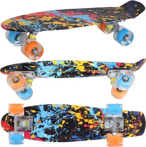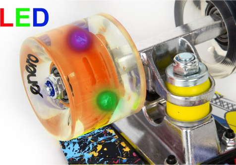 | Parametri: Izmēri: 56 x 14,5 x 10 x 1,5 cm (G x P x A - no zemes x klāja biezums) LED gaismas gredzeni: 60 x 45 mm (diametrs x platums) Riteņu cietība: 82 A. Materiāls: PU Kravas automašīna: lieljaudas 3,5 collas Gultņi: ABEC7 Amortizators: Jā Lietotāja svars: 20 līdz 80 kg Neto svars: 1620 kg Pilna masa: 1,660 kg Klase: "A" Krāsa: Daudzkrāsains Preču zīme: Enero Atbilst standartam: PN - EN 13613 |