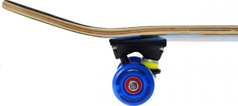 | CR3108SB Sk8Boy Nils Extreme ir skeitbords ar interesantu dizainu. Tās virsmu klāj zilas un melnas slidas grafikas. Klājs ir īpaši pastiprināts, profilēts un pulēts. Skrituļdēlis ir izgatavots no 9 slāņu laminēta saplākšņa. Materiāls garantē augstu izturību apvienojumā ar elastību. Tās augšdaļa ir pārklāta ar smilšpapīru (tā sauktais rokturis). Šī materiāla izmantošana palielina kāju saķeri. CR3108SB ir aprīkots ar 52 x 36 mm PU lietiem riteņiem izcilam ātrumam. Tāpat arī ABEC 5 klases gultņiem ir ļoti labas gaitas īpašības. Specifikācija: Izmēri: 78 x 20 cm Galda virsma: 9 slāņu laminēts saplāksnis profilētas no abām pusēm ļoti stiprs pulēta Gultņi: ABEC-3 Kravas automašīna: pastiprināta alumīnija kravas automašīna un pamatne Riteņi: PU liets 52 x 36 mm Satvērējs: melns, neslīdošs Svars: 2,25 kg Lietotāja svars: max 80 kg Piezīmes: Nav paredzēts komerciālai lietošanai 24 mēnešu garantija |