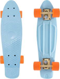 | max user weight 50 kg, skateboard weight 1.65 kg Penny board is currently the most popular model of the skateboard. It is ideal to use on pavements, squares and urban alleys. The wide and soft polyurethane wheels suppress vibrations ensuring comfort while riding. High quality precise and light ABEC-7 services, a guarantee of smoothness and speed while driving. The board of the tab is made of durable plastic, non slip desk will assure safe use. Small size and weight makes it easy to fit into backpack, bag or suitcase. Technical data: board: polypropylene length: 55 cm width: 14.5 cm height 9.5cm / 13 cm trucks: aluminum cushions: PE wheels: polyurethane bearings: ABEC 7 Wheel diameter: 60 mm Wheel width: 45 mm Weight: 1.65 kg max user weight: 50 kg |