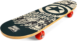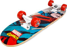 | wooden, max user weight 50 kg, skateboard weight 1.2 kg A wooden skateboard decorated with trendy Disney, Marevel and Star Wars license patterns. It is ideal to use on pavements, squares and urban alleys. The board is made of durable wood and has a non-slip surface that provides traction and increases safety. Because of small size and weight it is easy to transport. Technical data: board: 9-layer maple wood length: 61 cm width: 15 cm height 8 cm / 10 c trucks: PP cousions: PVC wheels: PVC durometer (+/- 5A): 95A bearing type: 608Z wheel diameter: 50 mm wheel width: 30 mm weight: 1.2 kg max user weight: 50 kg |