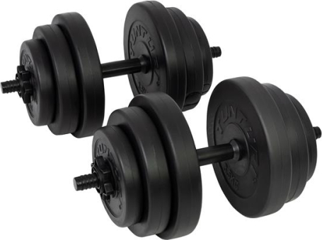 Šis parocīgais Tunturi hanteļu komplekts garantē lielisku un daudzveidīgu treniņu! Jūs varat veikt daudz dažādus vingrinājumus un trenēt praktiski visus ķermeņa muskuļus. Turklāt treniņa svaru var viegli pielāgot jūsu vēlmēm. Ideāli piemērots lietošanai mājās vai sporta zālē. Hanteļu komplekts sastāv no 2 stieņiem (katrs sver 1 kg), 12 diskiem un 4 uzgriežņiem. Svars pakāpeniski tiek palielināts ar svaru diskiem līdz maksimāli 28 kg. Tunturi hanteļu priekšrocības - Hanteles tiek pakāpeniski nosvērtas - Pilnībā izgatavots no melna vinila: grezns izskats - Ietver skrūvju uzgriežņus, lai novietotu svaru diskus - Viegli piestipriniet svaru diskus pie stieņiem - Dažādi vingrinājumi sava ķermeņa trenēšanai |