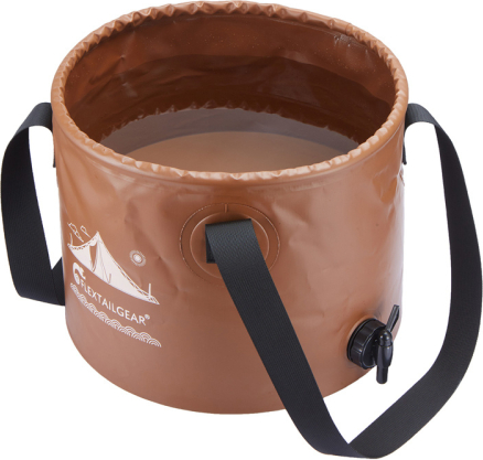 Flextail Flex Bucket 20 L Folding Bucket (Brown)The Flextail Flex Bucket is a foldable, self-supporting 20-liter outdoor bucket that allows for convenient transport and use of water in the field. The double-layer PVC construction retains its shape when filled and remains leak-proof even at high volumes, making the product ideal as a portable water container for camping or backpacking. The bucket folds flat, so it takes up minimal space in a backpack, bag, or camping gear. It is a practical piece of equipment for outdoor and travel use.