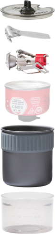 Īpaši kompakts gatavošanas un ēšanas komplekts solo mugursomniekiem, kurā iekļauts jaunākās paaudzes PocketRocket 2 mikro deglis. Īpaši kompakts: Efektīva ligzdošanas konstrukcija ietaupa vietu un viegli ievietojas mazākos iepakojumos. Īpaši viegls: Viss komplekts sver tikai 278 g (9,9 unces), tādējādi samazinot iepakojuma svaru līdz minimumam. Ātra vārīšanās: PocketRocket 2 plīts uzvāra 1 litru ūdens tikai 3,5 minūtēs. Daudzpusīgs: Katla izolētais rokturis ļauj to izmantot kā ēšanas un dzeršanas trauku; katla vāks kalpo arī kā sietiņš; bļoda ir droša gan karstiem, gan aukstiem dzērieniem. Komplektā ietilpst: PocketRocket 2 plīts (73 g/2,6 unces), 0,75 l cieti anodēta alumīnija katls, 16 unču bļoda*, caurspīdīgs vāks* ar filtrācijas atverēm, īpaši viegls mini katla pacēlājs, maiss. Vieta 240 gramu IsoPro™ gāzes balona ievietošanai (balons nopērkams atsevišķi).