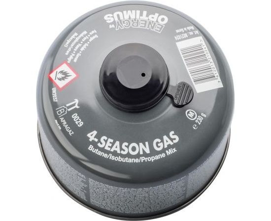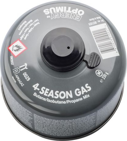 Optimus 4-Season gāzes balons satur 230 g augstākās kvalitātes izobutāna (70%), propāna (25%) un butāna (5%) gāzes maisījumu.