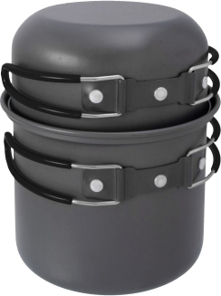 Rokturus var nolocīt, lai ietaupītu vietu Svars: 258 grami Iepakojuma izmērs: 14,7 x 12,8 cm Vāks Ø 13.5 x 6.5 cm, 105 g, 665 ml Katliņš Ø 14.7 x 11 cm, 195 g, 1270 ml Iekļauts sieta maisiņš Brīdinājums: Alumīnijs reaģē ar skābu vai sāļu pārtiku, un organisms to var absorbēt. Materiāls: cieti anodēts alumīnijs |