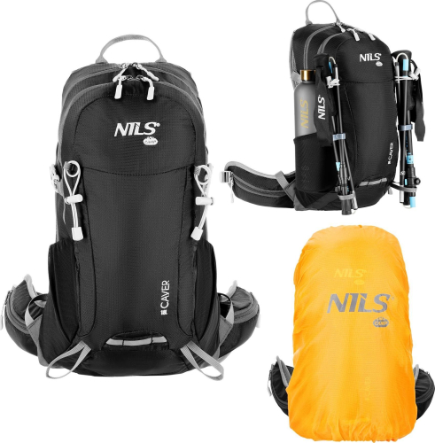 NC1950 BACKPACK TOURIST BLACK CAVER 18 NILS CAMP NILS CAMP presents the NC1950 Caver, the perfect choice for those planning short day trips. Lightweight, durable and compact - made with your needs in mind. Compact capacity and practical organization The Caver backpack offers a capacity of 18 liters, ideal for storing essential gear for short trips. It is equipped with two main zippered compartments for efficient organization and easy access to your belongings. Advanced features for convenience and comfort The backpack is equipped with a variety of pockets and compartments for efficient space management. It uses an advanced "Air Speed System" ventilation system that effectively insulates the main compartment from your back for continuous airflow and increased carrying comfort, especially on hot days. In addition, the backpack is equipped with a removable back panel with a removable frame, which makes it much easier to relieve pressure on the spine and allows easy removal of the panel, which is very practical for washing. Protection from rain The backpack is made of materials that protect against light rain. There is a hidden rain cover in the lower pocket that provides protection from heavy rainfall, and its quick installation ensures that your belongings stay dry. Safety and functionality An integrated emergency whistle is located on the chest strap buckle for added safety in emergency situations. The backpack also offers an additional panel of holders for various accessories, two side mesh pockets, and zippered pockets in the waist belt, ideal for storing your phone or other small items.