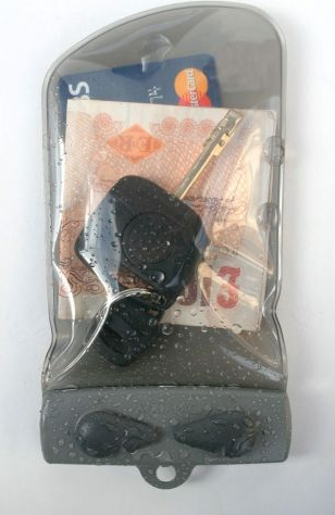 | Parocīgs, neliels ūdensnecaurlaidīgais iepakojums dokumentiem, mašīnas atslēgām ar signalizāciju, naudai u.c. nelielām, taču vērtīgām un svarīgām lietām. Caur iepakojumu iespējams lietot visas, iepakojumā ievietoto, ierīču pogas un slēdžus. Ideāli piemērots arī inhalatoriem. Iepakojums nodrošina aizsardzību arī pret putekļiem, netīrumiem un smiltīm. Visas iepakojuma šuves ir augstfrekvencē formētas, lai veidotu īpaši izturīgu saiti. Patentētais Aquaclip® (īpaši drošs, nerūsējošs, formēts plastmasas blīvējums) aizdares mehānisms ir viegli un ērti atverams un aizverams. Iepakojuma ūdensizturība: IPX8 - pasargā no ūdens gara perioda iemērkšanā zem spiediena (piemērots iemērkšanai uz periodu 30 minūtes 5 metru dziļumā). Izmēri: 85 x 170 mm (lielākās ievietojamās lietas izmērs: 90 x 155(apkārtmērs) mm). Komplektā iekļauta siksniņa. | ||||